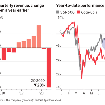 根据可口可乐公司 2020Q2 的业界披露,销售从去年的 10 亿美金下降到 7.15 亿美金。实现史上鲜见的 -28% 负增长。