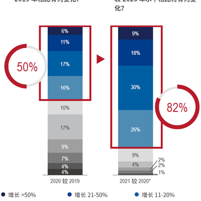 上海美国商会延续多年对美资在华企业进行中国商业环境调研,今年发布的报告看,2021 年的营收前景对比 2020 有很大提升;绝大部分行业已不再将新冠疫情视为主要困扰或运营挑战。