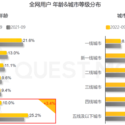 根据 QuestMobile 的监测数据,46 岁以上人群是中国移动互联网用户增量的主要来源。其中,51 岁以上人群占总比例的 25.2%,超过其他年龄分组。