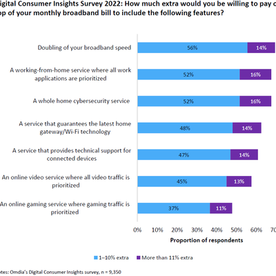 OMDIA 咨询公司针对全球消费者的调研(含中国区)显示,围绕家庭宽带用户的增值服务溢价空间。