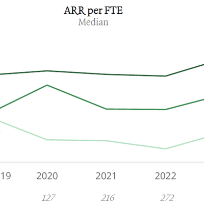 规模更小的早期和成长期企业的人均 ARR 收入则少得多(13 万美元、17.2 万美元)。