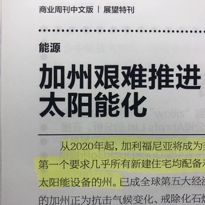 ⑴ 环保先锋 —— 美国加州要求 2020 起所有新建住宅必须装太阳能电池板;以实现 2045 年全州 100% 无炭电力的目标;