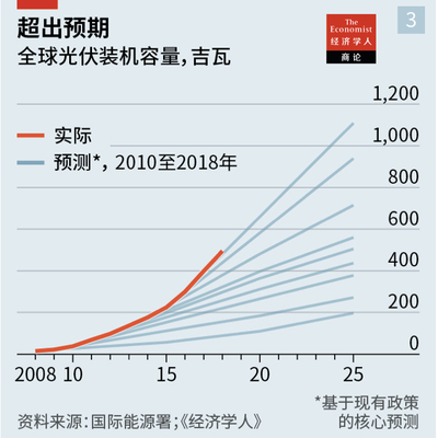 经济学人的报道,实际安装量是所有预测数字里面最激进的。