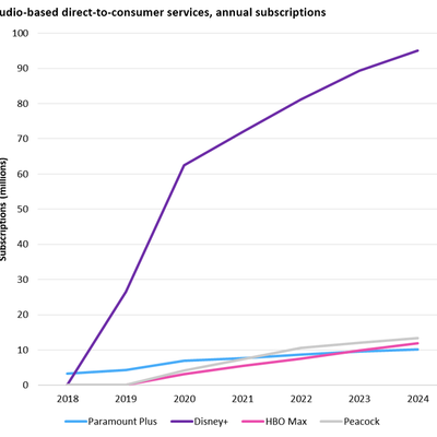 而现在流媒体 OTT 视频的兴起,Disney、HBO、派拉蒙影业、NBC Universal (Peacock)均开展自己的独立 OTT 视频业务,直接面向消费者收取费用。