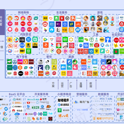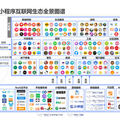 附图来自阿拉丁小程序统计平台,通过其绘制的生态图谱,我们可以看到一个典型生态系统包括哪些环节: