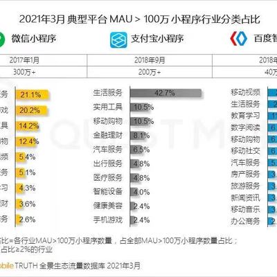 基于 QuestMobile 的数据,目前微信小程序达到 300+ 万款,支付宝 200+ 万款,百度有 40 万款。