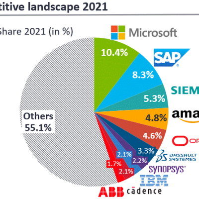微软(Azure)、SAP、西门子、Amazon(AWS)和 Oracle 分居前五名。