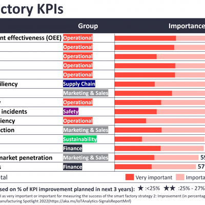 附图是 IoT Analytics 咨询公司评选的 Top 15 指标,前三名是:① 提升整体设备的运转效能;② 提升劳动力的效率;③ 提升生产产出。