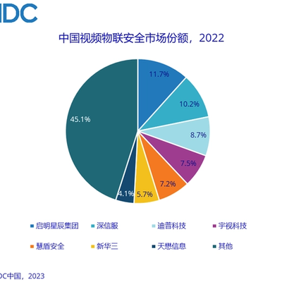 IDC 咨询公司数据显示,2022 年全年中国视频物联安全市场总体规模近 2.39 亿美元,同比降 3.7%。排名 Top 3 厂商为启明星辰、深信服和迪普科技。