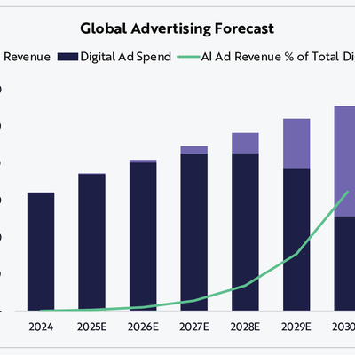 ARK Invest 预测全球广告支出将从 2024 年的 6,000 多亿美元提升到 2030 年的 超过 1 万亿美元。