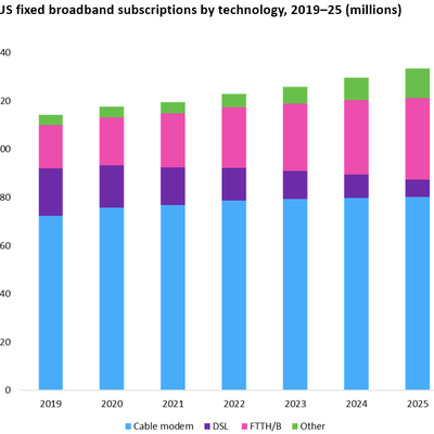 2020 年,FTTH/B 仅占固定宽带用户的 16%,预计到2025年,这一数字将增长到 23%。这一趋势主要来自 AT&T、Verzion 等运营商的驱动。