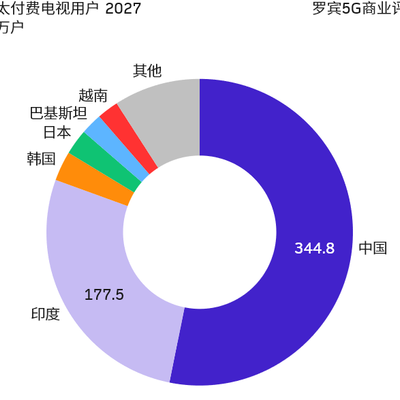 研究机构 Digital TV Research 估计未来五年,亚太地区的付费电视用户将增加 2,600 万,2027 年的付费电视渗透率为三分之二左右。