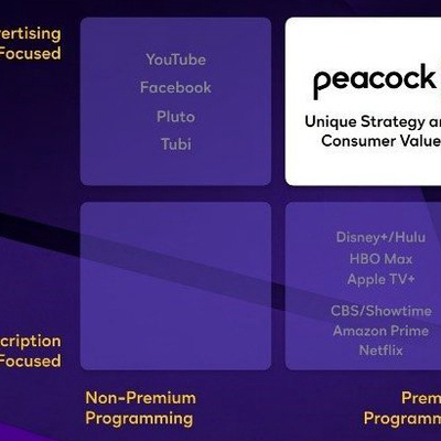 Peacock 目前包括三个层次:(1) 免费版:含广告,有限内容;(2) 4.99美元/月,全部内容,但还有广告;(3) 9.99 美元/月,全部内容,无广告。