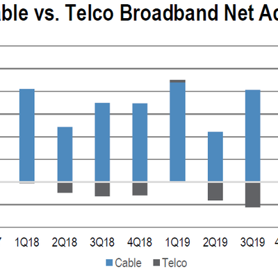 整体来看,美国固定宽带用户数今年保持了持续增长。细分来看,广电运营商(Cable)获得了 90% 以上的净增份额。电信运营商则显得很被动。