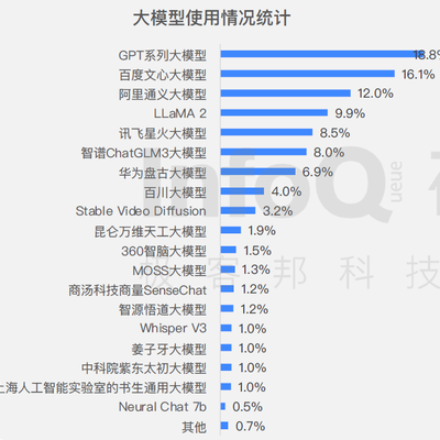 技术社区 InfoQ 在2023年12月的调研中,被开发者使用最多的大模型前三位分别是:OpenAI GPT 系列、百度文心和阿里通义。