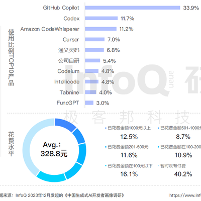 那么,中国开发者为此消费了多少钱呢? 根据 InfoQ 在 2023 年 12 月的开发者调研显示,平均每位开发者累计消费了 328.8 元。