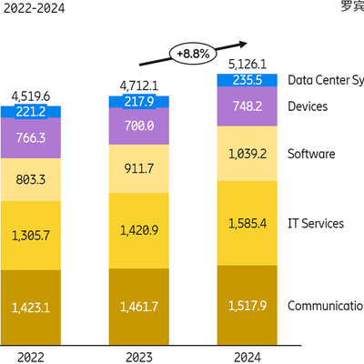 预计 2024 年整体 IT 开支可达 5.1 万亿美元,增长率为 8.8%。