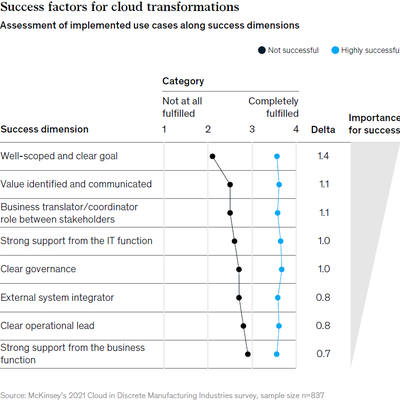 Mckinsey 以离散制造业为例,归纳了云计算战略转型的关键成功要素。
