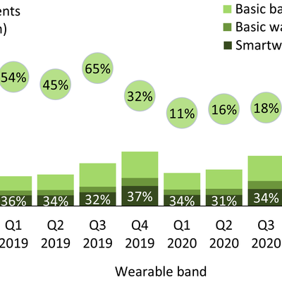 具体项目的销售数量看,智能手表增幅最快(48%),儿童手表(11%),而手环则是 -1% 的负增长。
