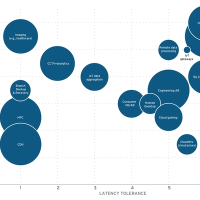 在讨论边缘数据中心时,451 Research 提供了一张矩阵,三个维度:(1) 可靠性;(2) 时延;(3) 数据量。