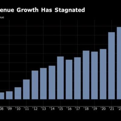 Apple 正在面临收入持续增长的天花板。2021 财年收入增长率为 33.26%,2022 财年为 7.79%,2023 财年为 -2.8%。