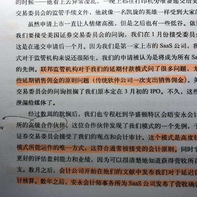 Salesforce 2003年底申请 IPO 时,SEC 对这种 SaaS 模式提出了很多问题,尤其是延期销售佣金这块。 安永会计师事务所的一位 Senior Partner 做出了重要贡献。 后来安永也发布了 SaaS 公司营收确认定位准则和立场文件。从此 SaaS 模式成为一种被资本市场认可的模式。