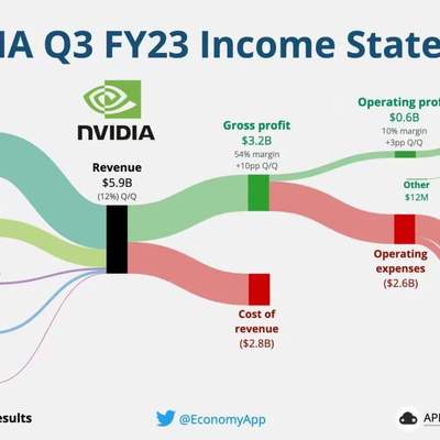 APP Economy Insights 基于英伟达 Nvidia 2023 财年 Q3 的指标,将其损益表进行了可视化呈现。