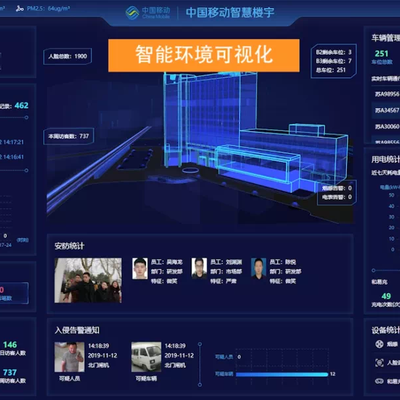 中移物联网联合江苏移动打造BIM 3D可视化办公楼宇案例。通过中移物联网OneBIM物联网三维可视化能力,对江苏移动办公大楼内部烟感、插座、停车地磁、人脸识别机、智能电表、充电面板等十多种自有智能设备、省移动大楼以及周边环境的三维可视化建模。管理人员可更加直观了解大楼各种资源运行情况,且可远程控制智能设备,大大提升楼宇物业管理水平和效率。