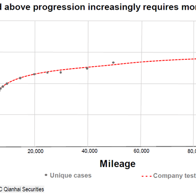 当用例比较简单时,相对少量的里程数据即达到所需要的的机器学习数据。随着用例难度的提升,所需要的数据呈指数级增长。