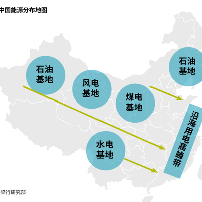 戴德梁行研究部绘制了一张草图,很直接地勾勒出全国不同类型的能源分布,以及主要用电带的分布。