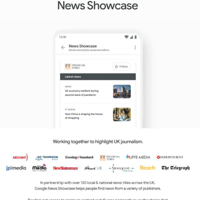 Google 把 Google News Showcase 视为一项新产品,Google 会支付款项给出版商以换取高品质的新闻内容。