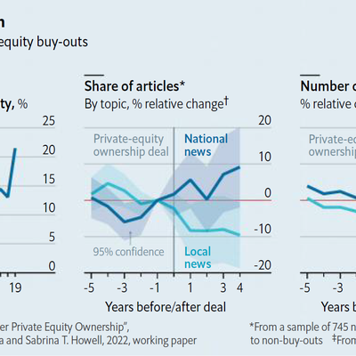 私募股权基金控制的新闻社的份额从 2001 年的 5% 上升到 2019 年的 23%(图一)。