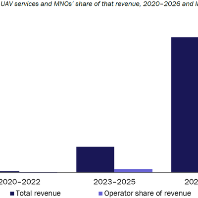 Analysys Mason 预测电信运营商从 5G 无人机中获得收入在 2026 年为 20亿美元,2019~2026 的 CAGR 为 104%。