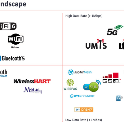 IoT Analytics 咨询公司做了一个归纳,其从网络速率和传输距离出发,对不同的技术进行了一个大致分类。