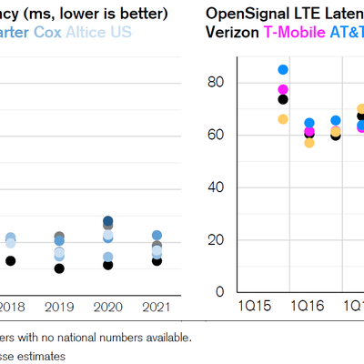 Credit Suisse 整理了第三方媒体和监测机构,对美国主要的固定宽带服务商和移动服务商的网络时延测试数据。