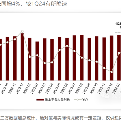 根据中金公司的研究,2024Q4 中国互联网行业的总体消费时长同比去年增长了 4%,主要由短视频、社交、阅读购物拉动。