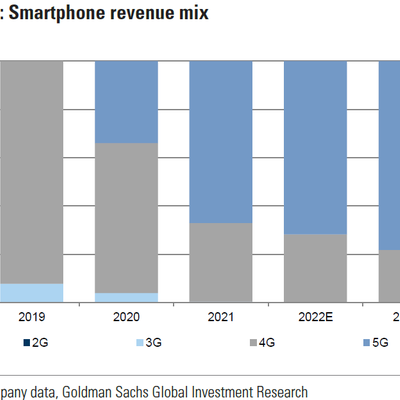 根据高盛的预测,联发科在未来三年内 5G 的收入占比将提升到接近 80%。