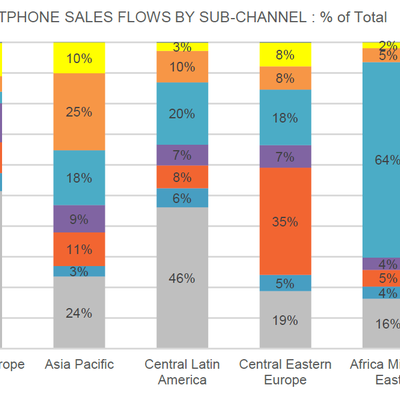 如果细分了看,智能机的销售渠道包括很多类别,运营商、大卖场、独立终端零售店、纯线上商城、手机厂家的自由渠道直接销售等。