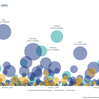 附图是 PitchBook 整理的过去四年,全球物联网在智能楼宇方案的投融资项目一览。