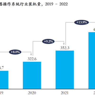 根据 Frost & Sullivan 咨询公司的研究数据,2022 年中国服务器操作系统的行业装机量答案达到 401.2 万套,较去年同比增长了 13.9%。