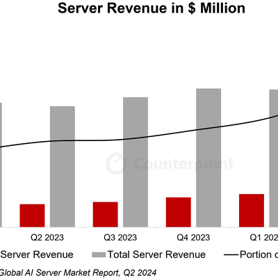 Counterpoint Research 监测数据显示,2024Q2 全球服务器销售中,有接近 30% 来自 AI 服务器。