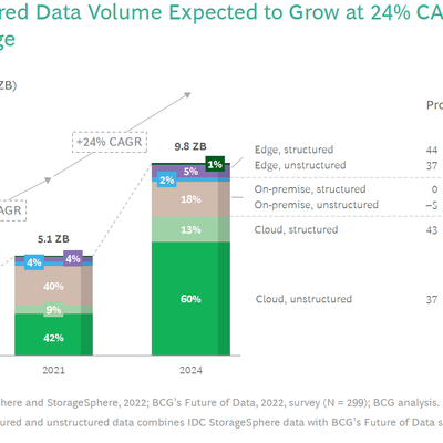 BCG 基于 IDC 的数据,绘制了 2018-2021-2024 全球数据存储情况。