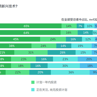 在投资意愿方面,5G 的活跃度最高:57% 的受访企业计划未来 1-3 年投资 5G。认为 5G 与其公司无关的受访企业仅占7%,大大低于去年的 12%。