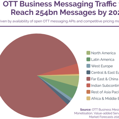 Juniper Research 咨询公司的数据显示,2023 年企业客户在 OTT 会话渠道的开支为 251 亿美元,东亚及中国占据了绝大部分份额。