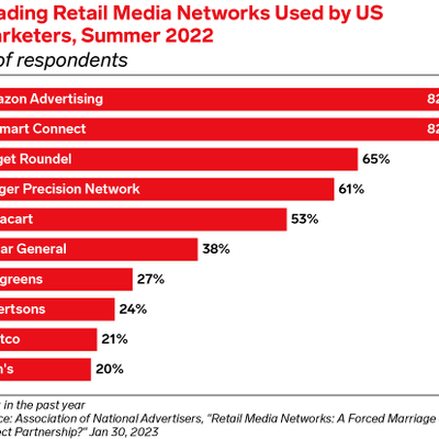 美国广告行业机构 Association of National Advertisers 的调研数据显示,Amazon Advertising 和 Walmart Connect 是目前美国使用率最高的零售媒体网络(Retail Media Networks)。