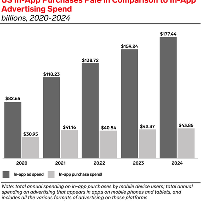 以美国 App 的情况看,广告的开支增长幅度远大于消费者直接花钱。