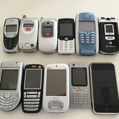 看到一张有很多部旧手机的照片,我也用过其中的一些型号。除了最后一部 iPhone 外,其他手机在当时也算具有一定的智能功能。