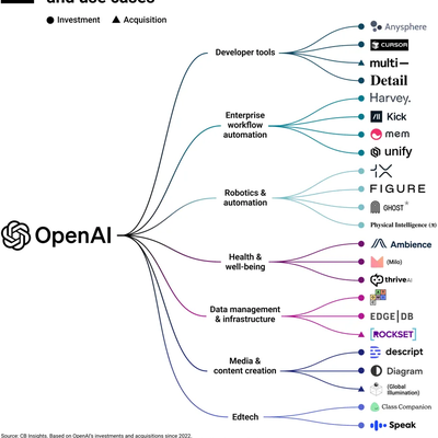 OpenAI 作为 “大型创业公司” 亦是如此。附件是 OpenAI 对多个领域的风险投资或者并购。