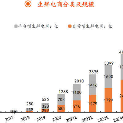 根据 CIC 咨询公司数据,2020 年生鲜电商规模 1,288 亿,其中平台型规模 703 亿,自营型 585 亿。预计 2025 年生鲜电商规模 5,118 亿,其中平台型 1,934 亿,自营型 3,184亿。