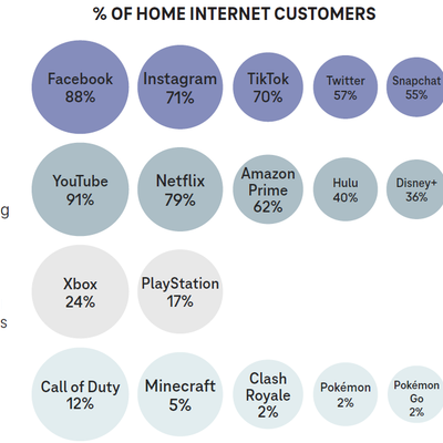 社交媒体和流媒体是最主力的两个方向。其次是游戏主机(Xbox, Sony PlayStation),这也是以来固网的重要终端。